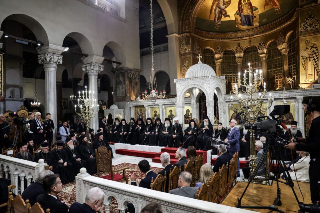 Μέσα στην αίθουσα ήταν προσκεκλημένοι εκκλησιαστικοί ηγέτες, πολιτικά πρόσωπα όπως ο πρόεδρος της «δημοκρατίας» ο Κωνσταντίνος Τασούλας και άλλοι οι οποίοι έχουν ψηφίσει υπέρ του νόμου των ομοφυλοφίλων.