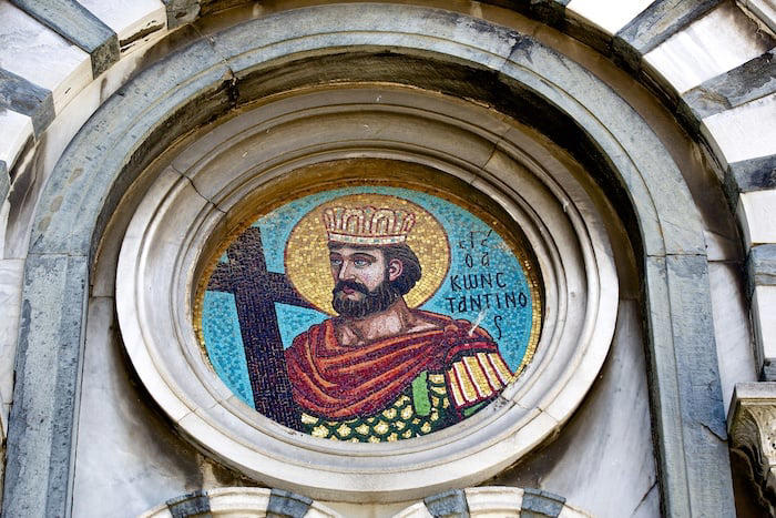 Τα εξωτερικά μωσαϊκά του ναού αποτελούν από μόνα τους λόγο επίσκεψης. Ο Γάλλος καλλιτέχνης Pretextat Lecomte, ειδικός στη βυζαντινή τεχνοτροπία, δημιούργησε έργα απαράμιλλης λεπτότητας και φωτός, με ανάγλυφες αποχρώσεις που θυμίζουν τον 11ο αιώνα. Στην κεντρική είσοδο, το βλέμμα σου συναντά τον Θεό, «Ὁ Ὤν», ενώ περιμετρικά απεικονίζονται οκτώ άγιοι – τα ονόματα των οποίων συνδέονται με την οικογένεια Σκυλίτση. Το τέμπλο του ναού κοσμούν αγιογραφίες του Γεωργίου Γραμμανδάνη, του Τηνιακού καλλιτέχνη που δίδαξε στο Ζάππειο και άφησε σπουδαία έργα στο Οικουμενικό Πατριαρχείο και σε πολλές εκκλησίες της Πόλης.