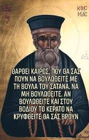 «Θα’ ρθει καιρός, που θα σας πουν να βουλωθείτε με τη βούλα του σατανά. Να μη βουλωθείτε. Αν βουλωθείτε, και στου βοδιού το κέρατο να κρυφθείτε, θα σας βρουν».